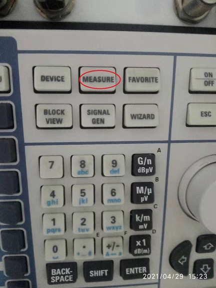 3.打开CMW500综测仪,按“MEASURE”键,选择测试