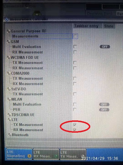 4.打开连接CMW500的电脑,打开测试软件,选择测试项目与测试信道